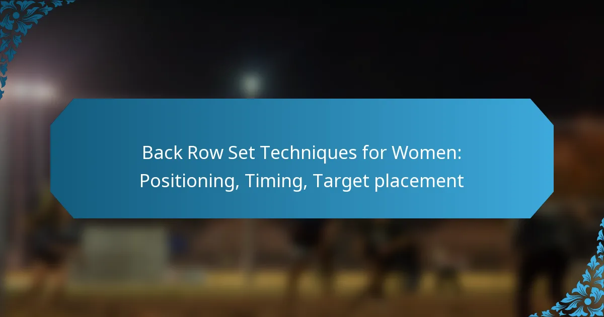 Back row set techniques for women are essential strategies in sports like volleyball that focus on optimizing ball placement and improving team dynamics. By mastering positioning, timing, and target placement, players can significantly enhance their performance and contribute to successful plays on the court.