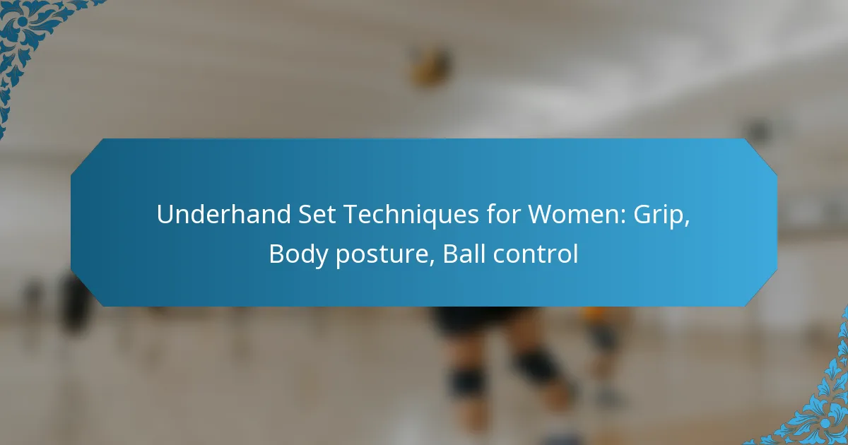 Mastering underhand set techniques is vital for women in volleyball, focusing on grip, body posture, and ball control. A relaxed yet controlled grip ensures precision and power, while an optimal body posture provides stability and alignment for effective execution. By honing these skills, players can significantly improve their setting accuracy and overall gameplay performance.