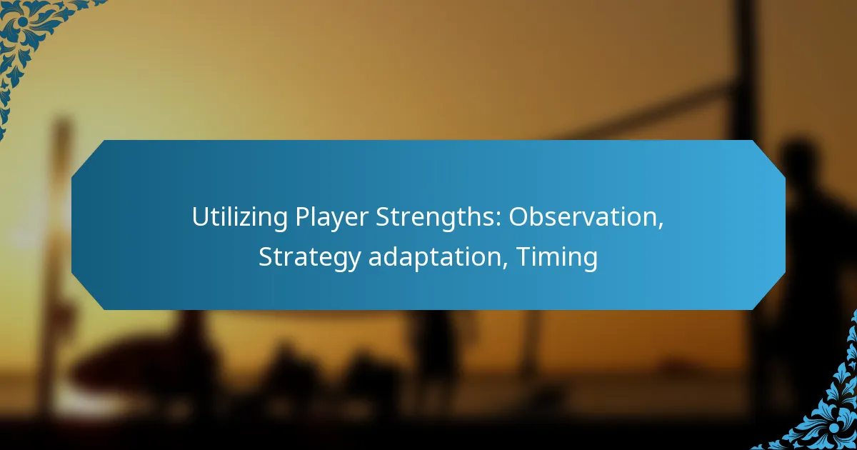 Utilizing player strengths is crucial for enhancing team performance, requiring effective observation techniques to assess individual skills during practice and gameplay. By adapting strategies to leverage these strengths, coaches can align game plans with each player’s unique capabilities. Additionally, recognizing the optimal timing to deploy these strengths during key moments in a game can significantly amplify a player’s impact on the field.